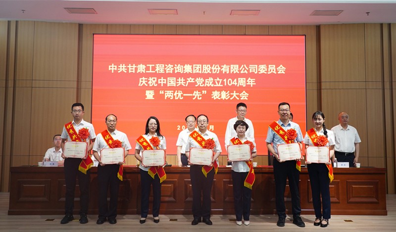 7月1日,甘肅工程咨詢集團召開慶祝中國共產(chǎn)黨成立104周年暨“兩優(yōu)一先”表彰大會,回顧黨的輝煌歷程,弘揚偉大建黨精神,全面展示集團黨建工作成效和黨員干部昂揚風(fēng)貌,激勵各級黨組織和全體黨員凝心聚力、擔當作為,奮力推動集團公司高質(zhì)量發(fā)展邁向新臺階。集團公司黨委書記、董事長張佩峰出席并講話,總經(jīng)理、董事陳一夫及在家領(lǐng)導(dǎo)班子成員出席,黨委委員、副總經(jīng)理孟康榮宣讀表彰決定,紀委書記、監(jiān)察專員師宗正主持會議。