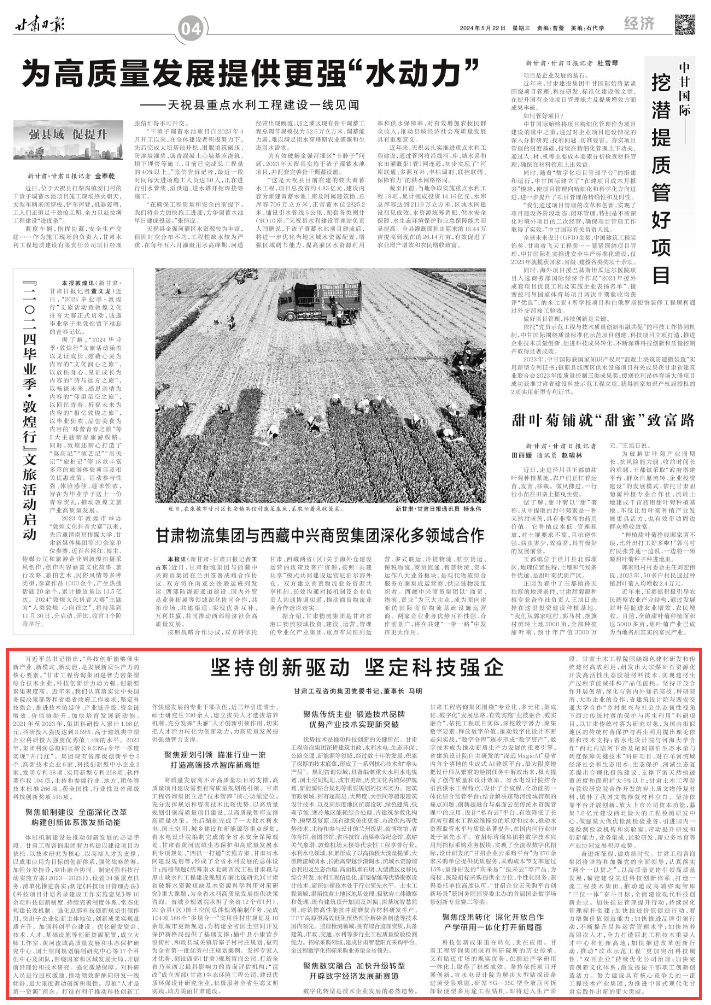 科技創(chuàng)新成果重在轉(zhuǎn)化、貴在應(yīng)用。甘肅工程咨詢集團(tuán)既有科研院所的歷史傳承,又有貼近市場(chǎng)的現(xiàn)實(shí)優(yōu)勢(shì),在推進(jìn)產(chǎn)學(xué)研用一體化上取得了積極成效。堅(jiān)持依托項(xiàng)目開(kāi)展創(chuàng)新,省水電設(shè)計(jì)院為解決大型鉆探設(shè)備進(jìn)場(chǎng)受限難題,研發(fā)YG—35C型全液壓可拆卸輕便型多用途工程鉆機(jī),即將進(jìn)入生產(chǎn)階段。甘肅土木工程院圍繞綠色建材研發(fā)和傳統(tǒng)建材高效利用,研發(fā)出大宗煤矸石資源化開(kāi)發(fā)高活性生態(tài)膠凝材料技術(shù),實(shí)現(xiàn)建材生產(chǎn)過(guò)程節(jié)能減排和產(chǎn)品低能耗。堅(jiān)持開(kāi)放合作開(kāi)展創(chuàng)新,深化與省內(nèi)外知名高校、科研院所、大型企業(yè)的合作,省建筑設(shè)計(jì)院與西安交通大學(xué)合作“鄉(xiāng)村振興與社會(huì)生態(tài)韌性視角下西北傳統(tǒng)村落的保護(hù)與再生利用”科研項(xiàng)目,以甘肅傳統(tǒng)村落為研究對(duì)象,為國(guó)內(nèi)相似地區(qū)的傳統(tǒng)村落保護(hù)與再生利用提出理論依據(jù)和技術(shù)支持;省水電設(shè)計(jì)院與河海大學(xué)合作“西北內(nèi)陸河下游及尾閭湖泊生態(tài)水量與調(diào)度保障關(guān)鍵技術(shù)”科研項(xiàng)目,對(duì)石羊河流域經(jīng)濟(jì)社會(huì)和生態(tài)用水、生態(tài)保護(hù)、河湖生態(tài)復(fù)蘇提出合理化措施建議,支撐下游天然植被覆蓋度和面積擴(kuò)大5%以上;甘肅土木工程院與敦煌研究院合作開(kāi)發(fā)的巖土質(zhì)文物修復(fù)材料,填補(bǔ)了我國(guó)文物修復(fù)材料空白。堅(jiān)持依靠平臺(tái)開(kāi)展創(chuàng)新,放大上市公司資本功能,募集7.6億元建設(shè)西北最大的工程檢測(cè)研發(fā)中心,做強(qiáng)做大做優(yōu)檢測(cè)檢驗(yàn)業(yè)務(wù),引進(jìn)國(guó)內(nèi)一流檢測(cè)檢驗(yàn)機(jī)構(gòu)和實(shí)驗(yàn)室,帶動(dòng)提升研發(fā)和創(chuàng)新能力,業(yè)務(wù)集成、試驗(yàn)研發(fā)、新業(yè)務(wù)培育等產(chǎn)業(yè)協(xié)同發(fā)展積厚成勢(shì)。