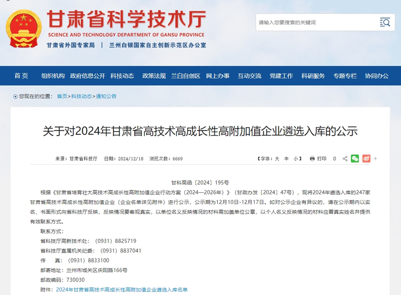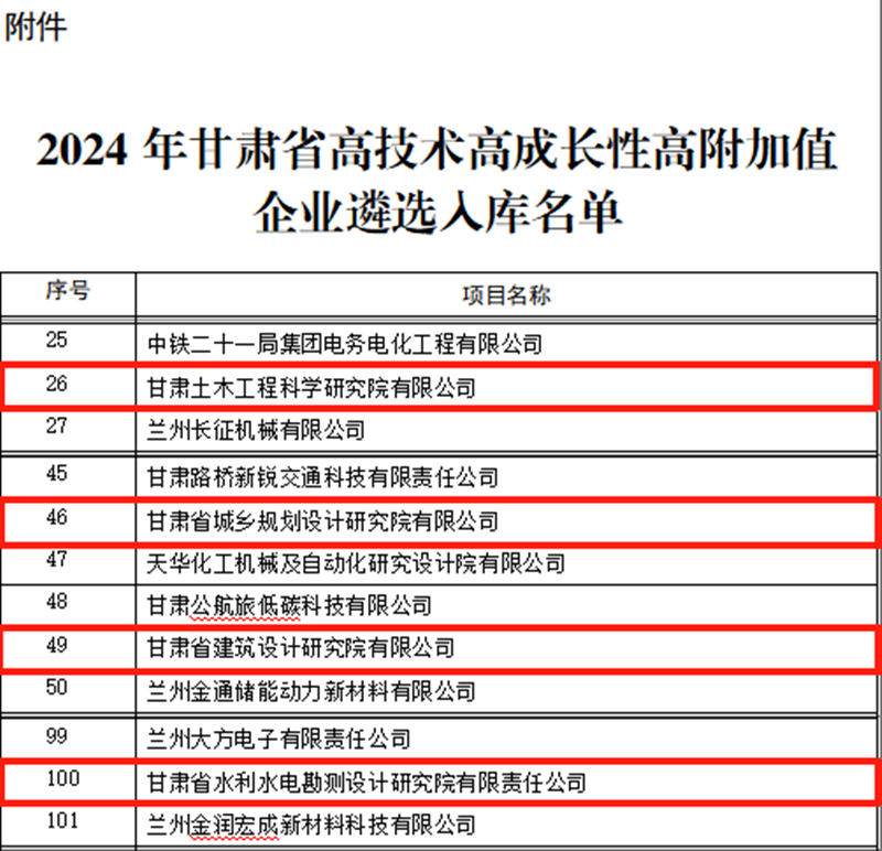 甘肅工程咨詢集團(tuán)4戶企業(yè)入選2024年甘肅省高技術(shù)高成長性高附加值企業(yè)名單