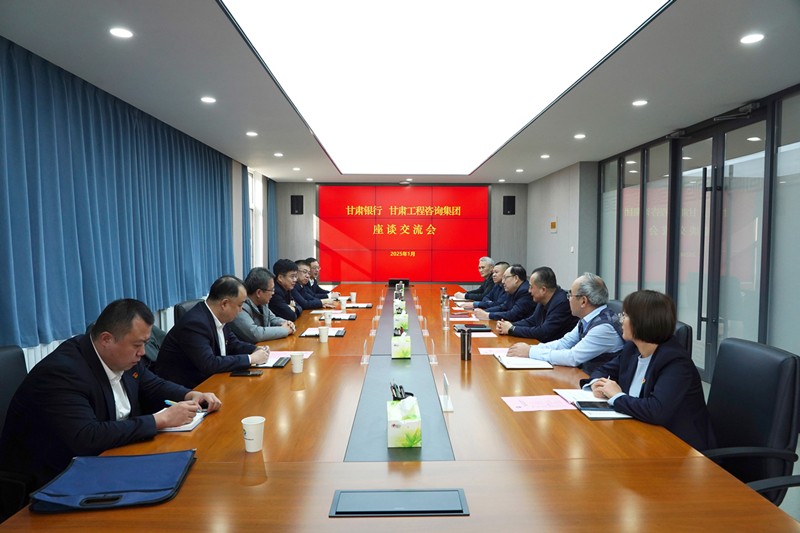 1月15日,甘肅工程咨詢集團(tuán)黨委書記、董事長張佩峰與來訪的甘肅銀行黨委書記、董事長劉青就深化銀企合作座談交流。甘肅銀行領(lǐng)導(dǎo)王錫真、杜晶,甘肅工程咨詢集團(tuán)領(lǐng)導(dǎo)成少平參加。