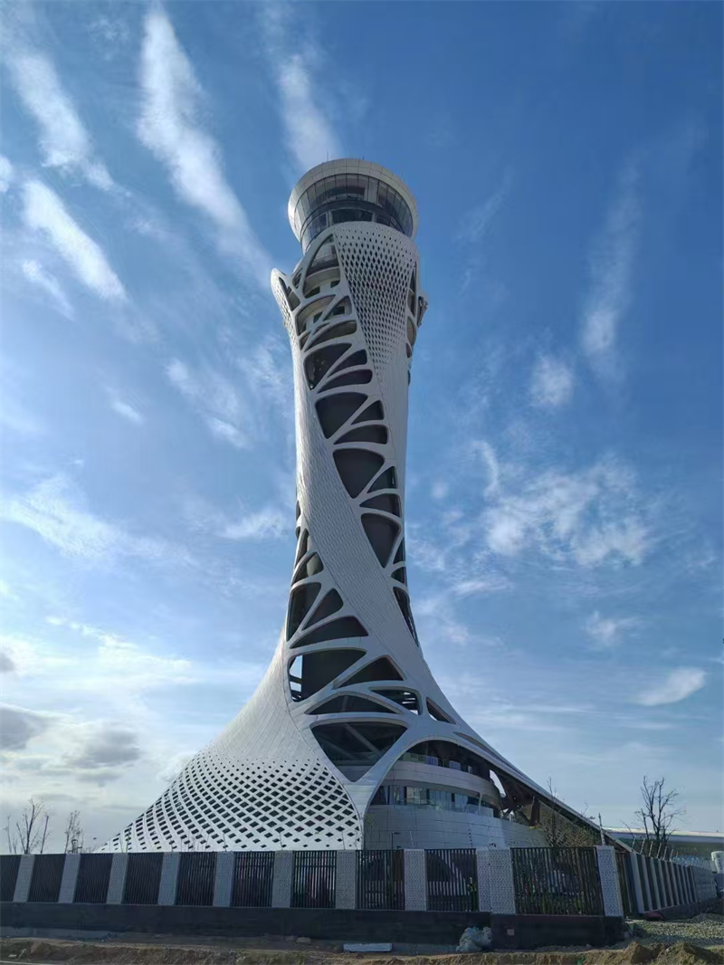 項(xiàng)目總投資13.43億元,塔臺(tái)建筑高度99.9米,是全國(guó)空管分局有史以來(lái)建設(shè)規(guī)模最大、投資最大的空管建設(shè)項(xiàng)目,創(chuàng)造了多項(xiàng)分局站建設(shè)第一。項(xiàng)目總體以“敦煌飛天”與“絲綢之路”為靈感,塔臺(tái)采用鋼結(jié)構(gòu)斜交網(wǎng)格外框+鋼筋混凝土核心筒設(shè)計(jì),空管工作區(qū)采用鋼筋混凝土框架+首層BRB支撐+基礎(chǔ)橡膠隔震支座設(shè)計(jì),鋼結(jié)構(gòu)總量達(dá)3561噸。