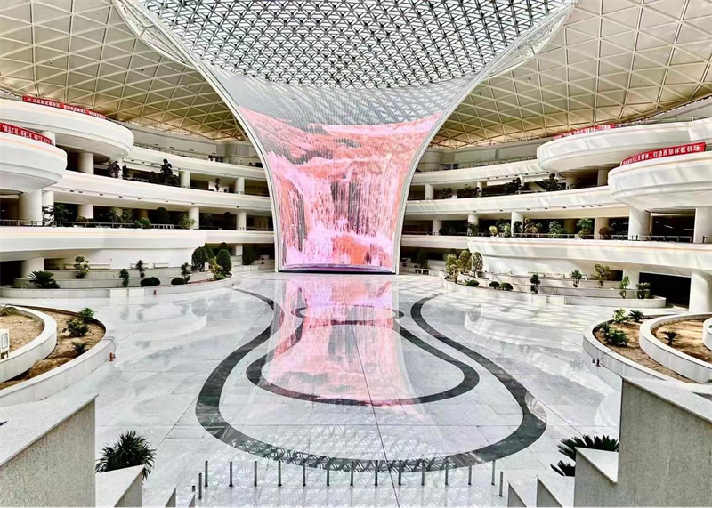 航站樓基礎(chǔ)工程中井樁數(shù)量高達(dá)10181根,鋼結(jié)構(gòu)由3.8萬(wàn)個(gè)桿件拼裝而成,需設(shè)置50多個(gè)吊裝提升點(diǎn),最大提升高度18米。