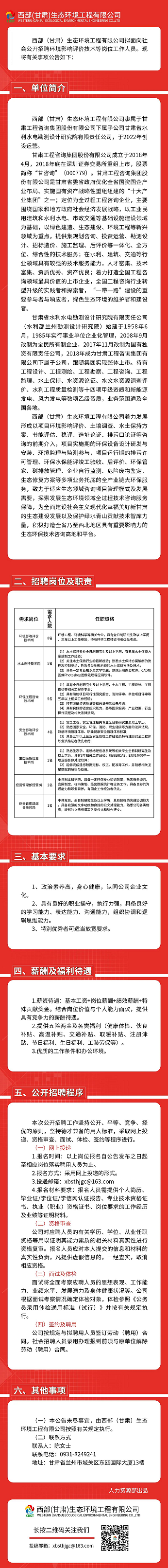 甘肅省水利水電勘測設計研究院有限責任公司——西部(甘肅)生態(tài)環(huán)境工程有限公司招聘公告