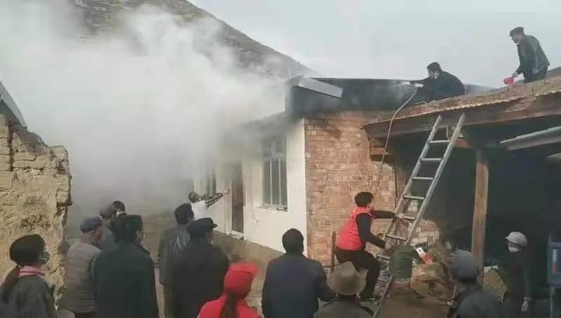 聽到村民們的呼救聲,正在村口疫情防控監(jiān)測(cè)點(diǎn)值守的幫扶工作隊(duì)隊(duì)員、包村干部與鎮(zhèn)領(lǐng)導(dǎo)、村“兩委”干部及志愿者一起,第一時(shí)間沖向了火災(zāi)現(xiàn)場(chǎng),實(shí)施開展撲救工作。現(xiàn)場(chǎng)火勢(shì)兇猛,盡管眾人一起用水傾澆,卻仍未阻止火勢(shì)蔓延。瞬間,屋頂?shù)臋M梁也燒著了,發(fā)出噼啪的響聲,房頂隱約在搖晃,可大家依然奮不顧身地救火,甚至有人沖上了危險(xiǎn)的屋頂。