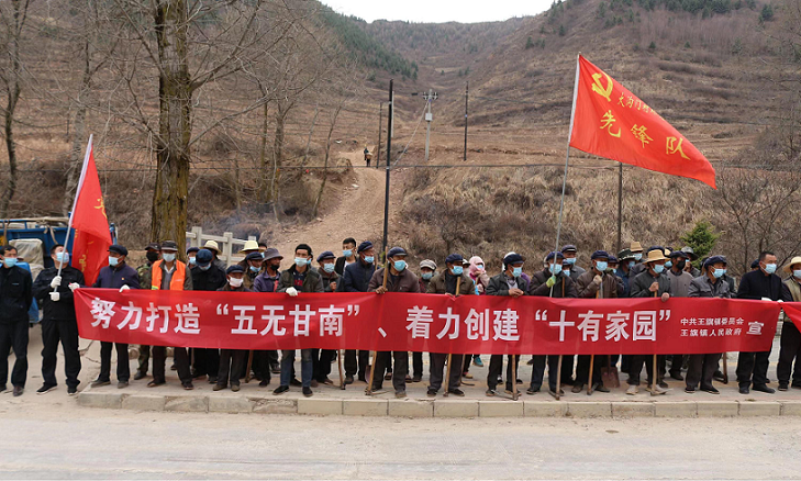 2022年4月,根據(jù)王旗鎮(zhèn)安排,駐村幫扶工作隊(duì)員會同其他鎮(zhèn)村干部組織群眾數(shù)十人,在洮河西岸磨溝段開展了以“黨旗高擎、黨徽常耀、綠色出行、保護(hù)環(huán)境”為主題的義務(wù)植樹活動(dòng),共栽下4000余棵松樹苗,掀起了植樹造林的熱潮。