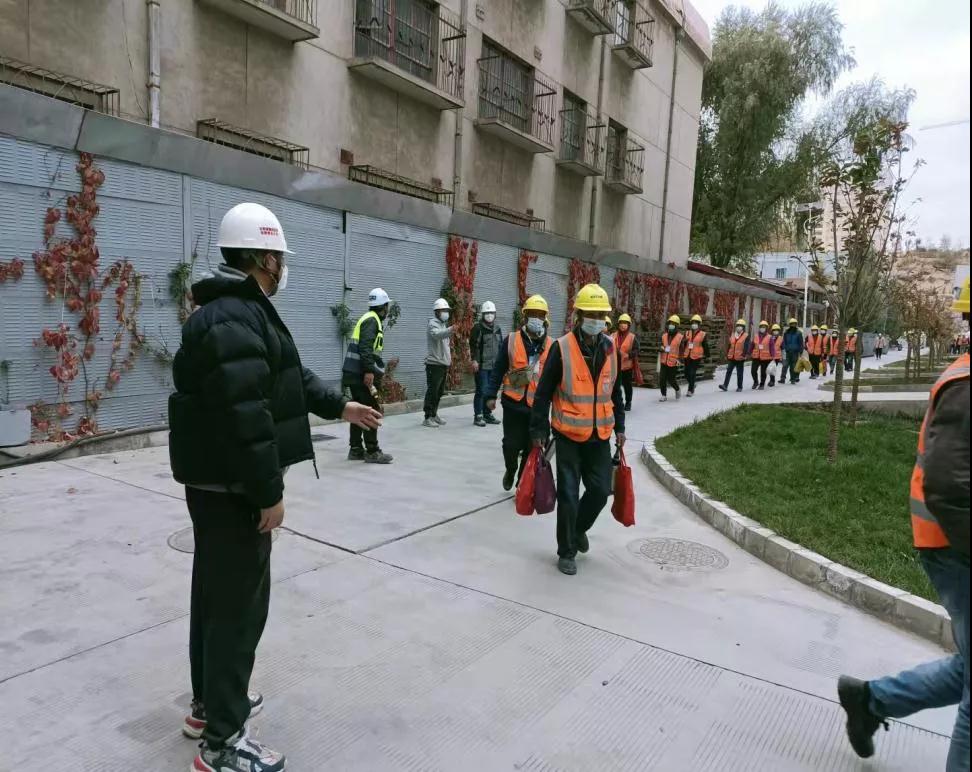 施工現(xiàn)場因勞務人員體量大(高峰值有1300人同時施工)、組織工作難度大、現(xiàn)場需解決的問題較多,監(jiān)理組負責人張昕朗、總監(jiān)代表柳曉恩、亢巖多次組織召開專題會議,總結(jié)經(jīng)驗,對施工單位疫情防控工作提出具體做法要求和建議:對施工現(xiàn)場進行全封閉式管理,上、下班由各班組負責人帶領(lǐng)施工人員列隊有序進出現(xiàn)場,回居住點后不得擅自外出;嚴禁集中或外出就餐,飯食由各班組安排1-2人,統(tǒng)一采購后分發(fā);協(xié)助施工單位積極組織工人進行核酸檢測,并有序組織各分包單位分批次上下班和就餐;往返工作生活區(qū)所有工人穿戴反光馬甲,佩戴口罩測量體溫;做好疫情期間施工人員的心理疏導工作。