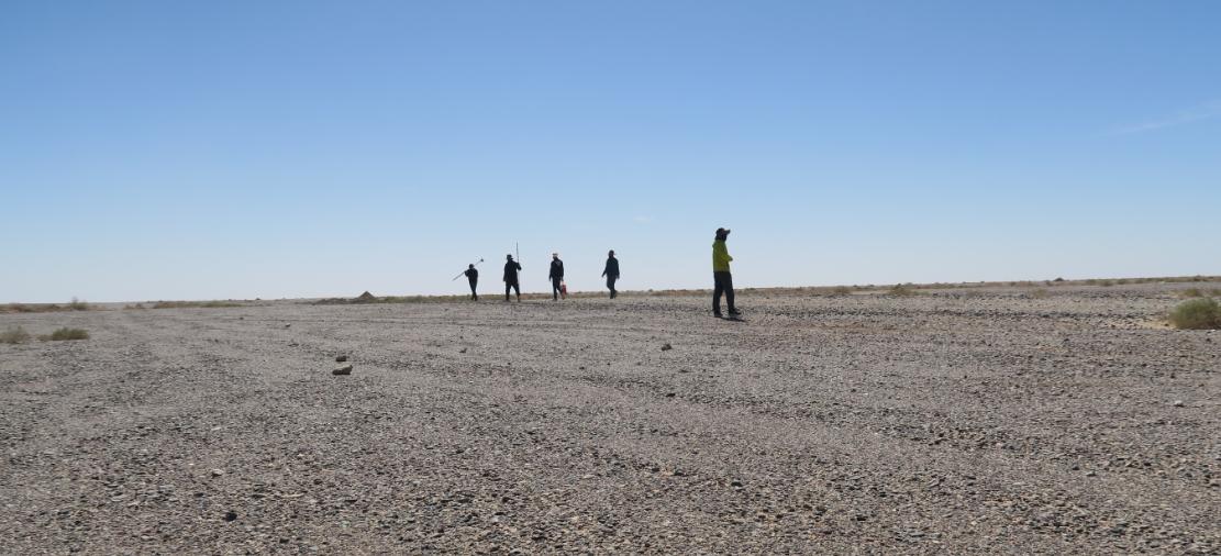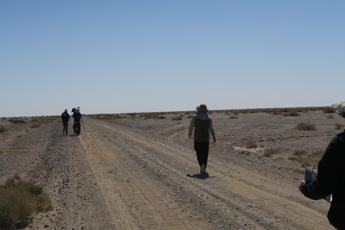 從5月5日到5月21日,項(xiàng)目組人員每天往返數(shù)百公里,反復(fù)踏勘現(xiàn)場,對路線方案進(jìn)行了多次的優(yōu)化調(diào)整,認(rèn)真細(xì)致勘測,累計(jì)完成測設(shè)里程90公里。憑著堅(jiān)韌的信念與對工作的崇敬之心,用汗水與腳步丈量著這片廣袤的沙漠,層層重疊的足跡深深地印在了那一片黃沙之中,為的是將來能形成一條便捷之路。