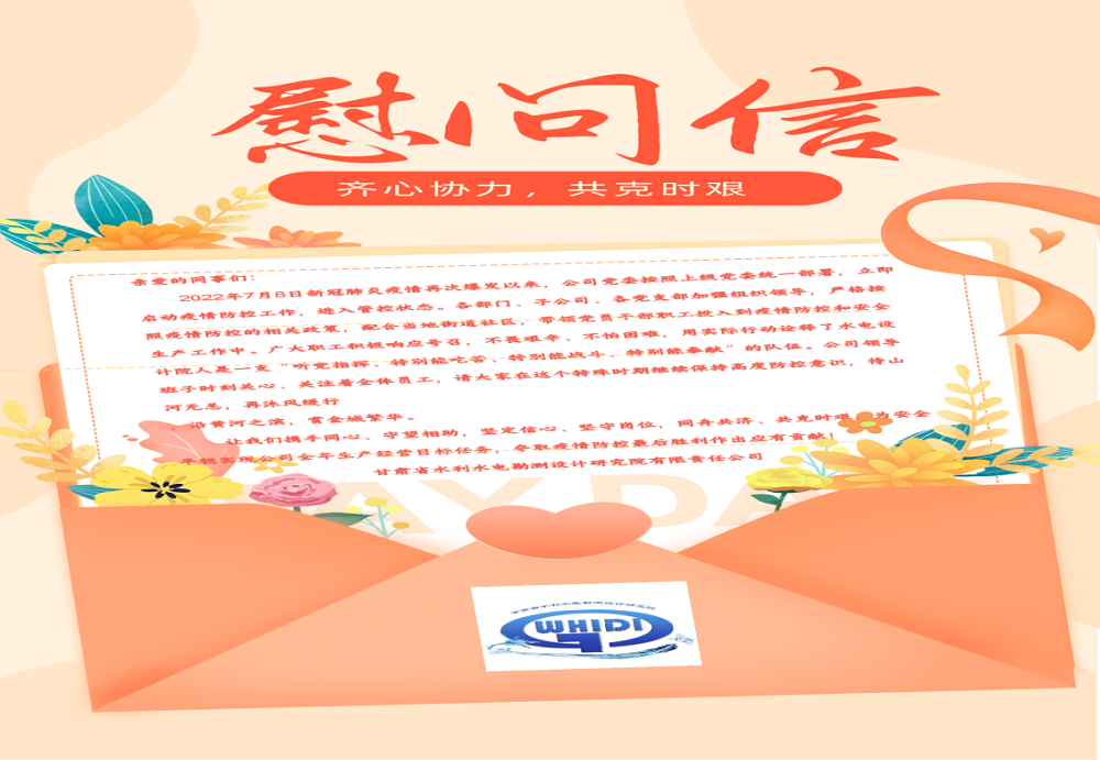 同時,注重加強人文關(guān)懷。水電設(shè)計院黨委對集中隔離的員工進行了一對一電話連線慰問,并向全體員工致信,對堅守一線員工、志愿者和居家辦公人員給予鼓勵,鼓舞大家消除不安緊張情緒,提振精神、鼓舞士氣,動員廣大員工積極配合和參與疫情防控,及時做好心理疏導,保證員工隊伍情緒穩(wěn)定。