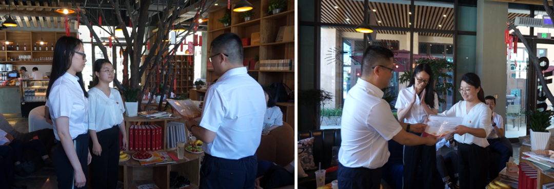 活動(dòng)舉辦當(dāng)天,恰逢黨員袁田同志和仲亞男同志的“政治生日”,為了讓黨員同志們切實(shí)感受到來自黨組織的溫暖與關(guān)懷,引導(dǎo)廣大黨員進(jìn)一步強(qiáng)化身份意識(shí)、宗旨意識(shí)和責(zé)任意識(shí),交流會(huì)現(xiàn)場還為兩位黨員同志舉辦了一場特別的“政治生日會(huì)”,為她們送上一張?zhí)刂频摹吧召R卡”、一枚新黨徽、一本新黨章,以極富儀式感的活動(dòng)形式,提醒激勵(lì)黨員同志們要時(shí)刻謹(jǐn)記黨員職責(zé),不忘初心、牢記使命,在工作和生活中時(shí)刻以黨員標(biāo)準(zhǔn)嚴(yán)格要求自己,切實(shí)發(fā)揮黨員干部的先鋒模范作用。