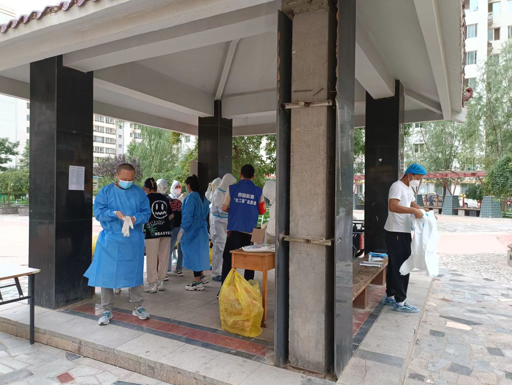 除了報(bào)名下沉社區(qū)的人外,還有一些干部職工主動(dòng)聯(lián)系社區(qū)參加到了志愿服務(wù)者的隊(duì)伍中來。對(duì)規(guī)劃設(shè)計(jì)院第十三黨支部書記、建筑設(shè)計(jì)九分院院長(zhǎng)路文理和檢測(cè)分院的張文慶來說,志愿工作早已輕車熟路,這已經(jīng)是他們第三次參加社區(qū)疫情防控志愿服務(wù)了。本輪疫情發(fā)生后,他們?cè)俅文嫘卸?,義無反顧地沖到疫情防控“第一線”。