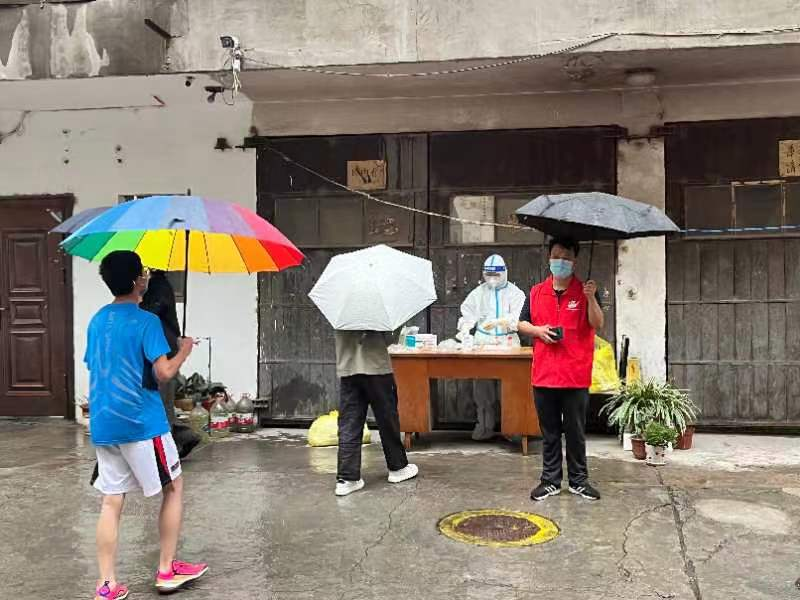 在高風(fēng)險(xiǎn)社區(qū),規(guī)劃設(shè)計(jì)院第十六黨支部入黨積極分子劉偉正在執(zhí)行“封門”任務(wù)。“一接到確診通知,我們就要連夜對(duì)密接住戶施行管控措施,工作時(shí)間是24小時(shí)隨時(shí)待命,防護(hù)服穿脫太麻煩,累了我找地方靠一會(huì)兒就行。”孫偉略帶疲倦地說道。高風(fēng)險(xiǎn)區(qū)意味著與病毒更近距離的接觸,對(duì)志愿者的規(guī)范操作要求也更加嚴(yán)格。每一次敲門、登記、核對(duì)人數(shù)、掃碼做核酸等看似簡(jiǎn)單的流程,他都會(huì)在腦海里反復(fù)演練。突然的封門,會(huì)有一些居民鬧情緒,面對(duì)激烈的言辭,他總能耐心安撫,爭(zhēng)取居民對(duì)防控措施更多的理解和支持。空閑時(shí),他會(huì)拎著大袋小袋,給住戶送些必備物資,提醒他們做好防護(hù),做些力所能及的事情。勇者不孤,劉偉僅僅是這支隊(duì)伍中的一分子,還有像武利平、楊致遠(yuǎn)、姚友龍、劉澤靖、孔利兵、巨斌、楊一、劉偉、滿子熠、李文磊、仲乃河、蘇曉文、魏翔等像他一樣的志愿者,正在社區(qū)疫情防控一線,默默地貢獻(xiàn)著自己的力量。他們有的是企業(yè)中層“一把手”,有的是建筑師,有的是規(guī)劃師,有的是財(cái)務(wù)管理人員……,但穿上白色的防護(hù)服、換上紅色的馬甲,他們就有了一個(gè)共同的名字——疫情防控志愿者。