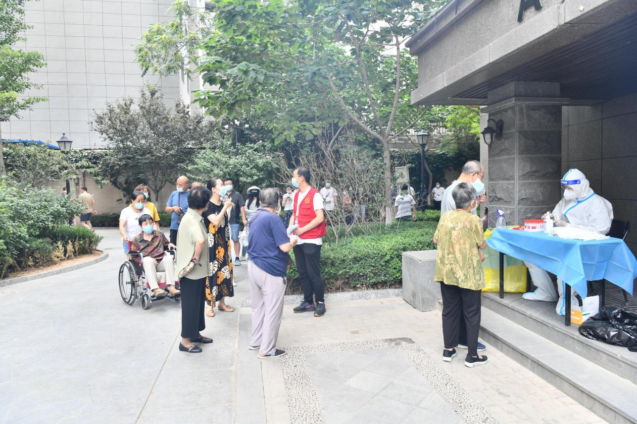 中午時(shí)分,志愿者們頂著38℃的高溫,穿梭在小區(qū)核酸檢測(cè)采集現(xiàn)場(chǎng)、小區(qū)出入口,按照核酸檢測(cè)要求,引導(dǎo)待測(cè)人員佩戴好口罩、保持安全距離、有序排隊(duì)。他們嗓子啞了也顧不上喝一口水,身上的衣服已不知被汗水浸濕了多少次,卻始終沒(méi)有一個(gè)人叫苦叫累,依然努力奮戰(zhàn)在核酸采樣第一線,用實(shí)際行動(dòng)展示“奉獻(xiàn)、友愛(ài)、互助、進(jìn)步”的志愿精神,詮釋國(guó)企擔(dān)當(dāng)。