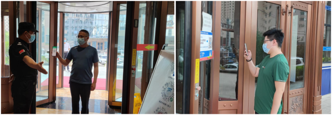 嚴(yán)守“入口關(guān)”。在辦公樓入口處,安保人員嚴(yán)格做到“一掃三查”,查看職工佩戴口罩,查驗(yàn)健康碼和行程碼,進(jìn)行體溫檢測(cè),最大限度地阻斷輸入性疫情風(fēng)險(xiǎn)。