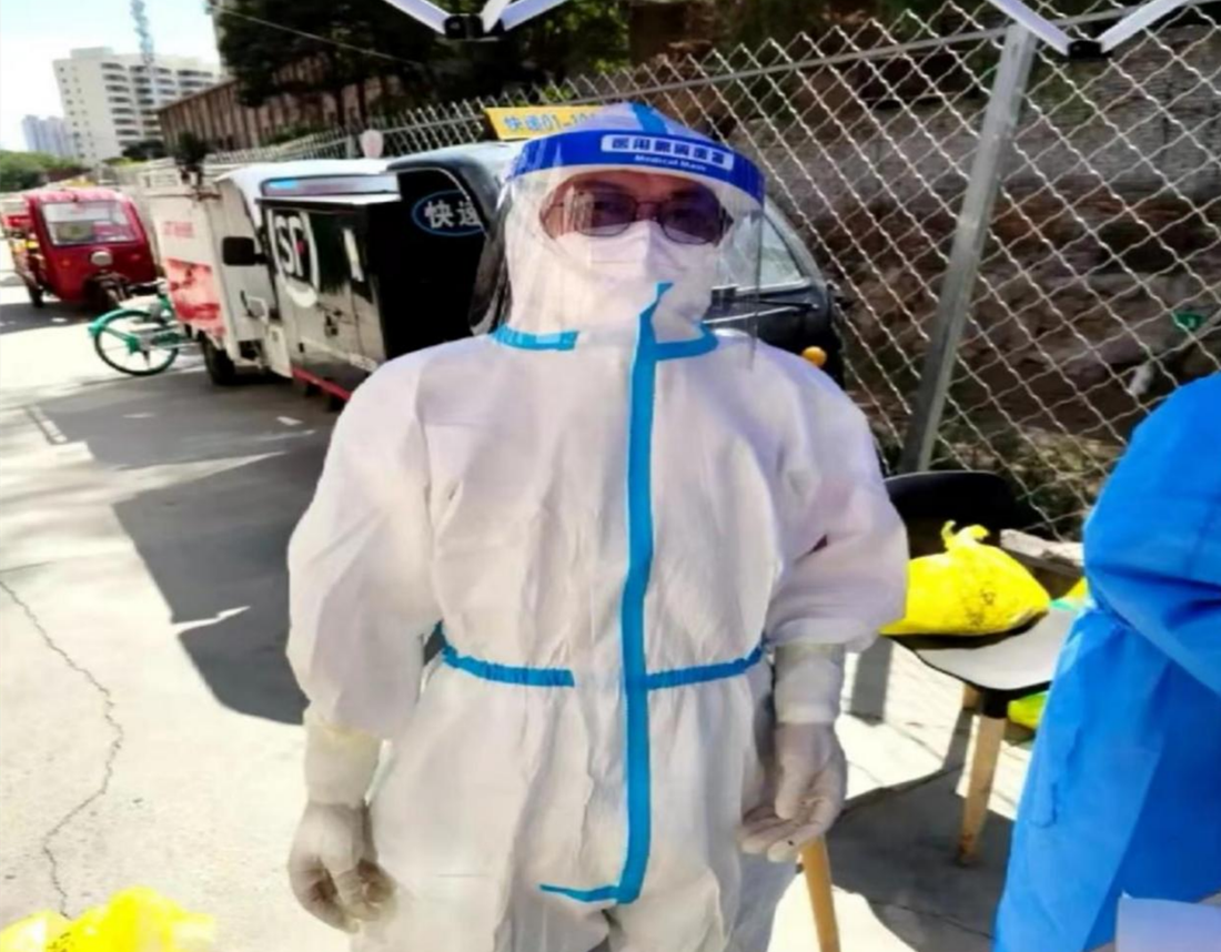 疫情防控期間,朱磊自愿報名參加到疫情防志愿服務者隊伍中去,貢獻自己的一份力量。