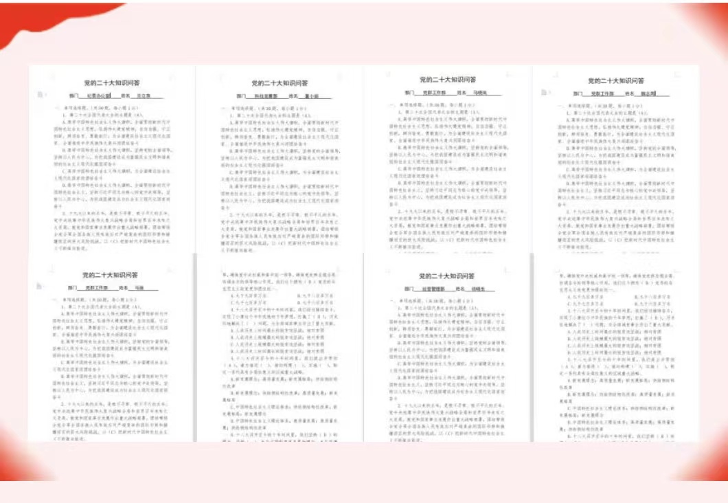 充分利用網(wǎng)絡平臺和宣傳櫥窗,開設黨的二十大精神學習專欄,制作宣傳展板,進行電子屏滾動展播,并在企業(yè)網(wǎng)站和微信公眾號平臺,運用圖片新聞、短視頻等形式,對外發(fā)布黨的二十大學習內(nèi)容、學習情況,持續(xù)營造濃厚的學習氛圍。