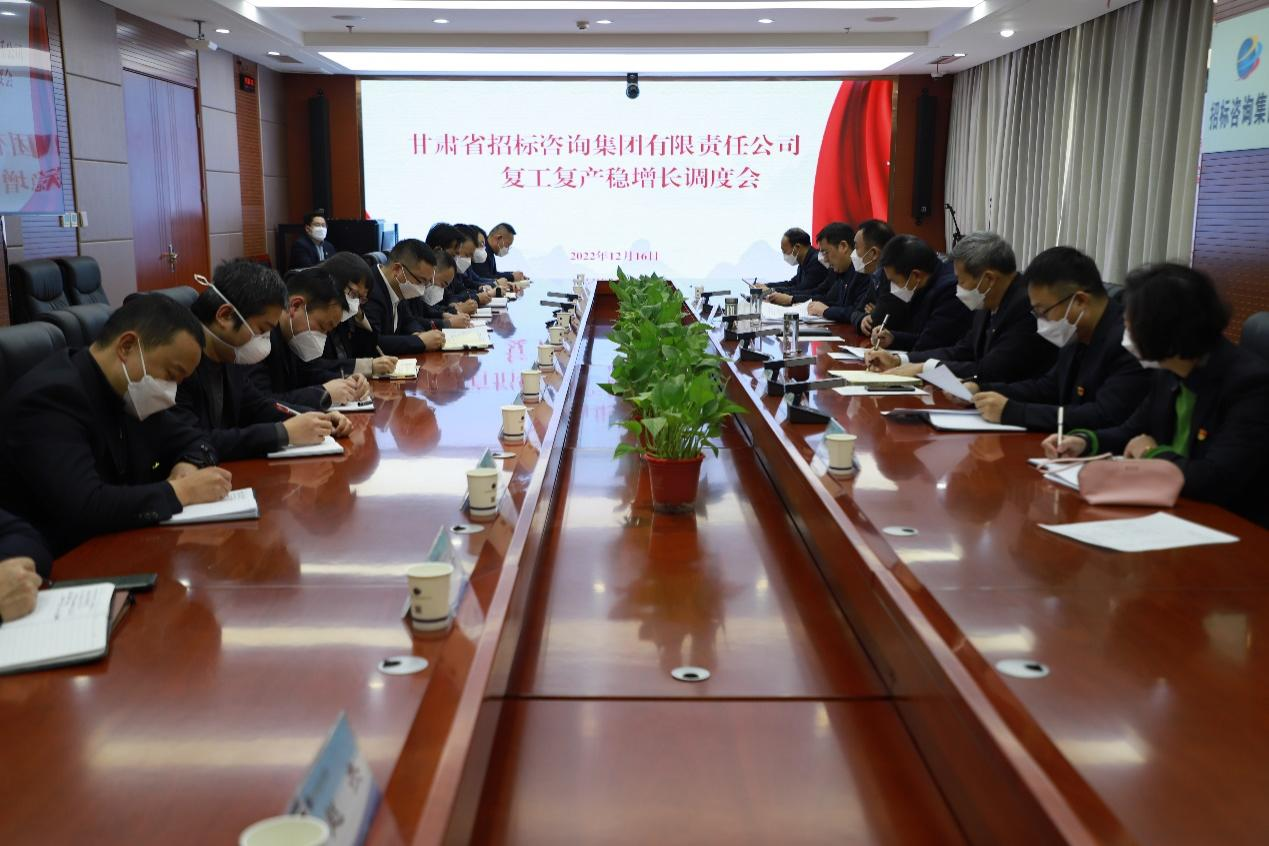 近日,甘肅省招標(biāo)咨詢集團(tuán)有限責(zé)任公司召開復(fù)工復(fù)產(chǎn)穩(wěn)增長調(diào)度會,傳達(dá)學(xué)習(xí)全省工業(yè)復(fù)工復(fù)產(chǎn)穩(wěn)增長調(diào)度會和集團(tuán)公司復(fù)工復(fù)產(chǎn)穩(wěn)增長調(diào)度會精神,分析1-11月生產(chǎn)經(jīng)營情況,安排部署近期及來年相關(guān)工作。會議由公司黨委書記、董事長牛茺主持。招標(biāo)咨詢集團(tuán)領(lǐng)導(dǎo)班子成員、機(jī)關(guān)各部門及各子公司負(fù)責(zé)人參加會議。招標(biāo)中心、金安公司作交流發(fā)言。