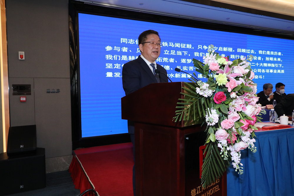 牛軍在講話中指出,水電設(shè)計院的工作是甘肅水利工作的一個重要組成部分。過去的一年,水電設(shè)計院堅持以習(xí)近平新時代中國特色社會主義思想為指導(dǎo),切實踐行“十六字”治水思路,準確把握全省水利發(fā)展動態(tài),緊緊圍繞生產(chǎn)經(jīng)營中心任務(wù),實現(xiàn)快速發(fā)展,為全省水利改革發(fā)展提供了堅強的技術(shù)支撐。他要求,新的一年,水電設(shè)計院一要堅持黨的領(lǐng)導(dǎo),深入學(xué)習(xí)貫徹黨的二十大精神,把黨的領(lǐng)導(dǎo)和黨的建設(shè)融入企業(yè)治理各環(huán)節(jié),堅持服務(wù)全省水利“五水共建、四網(wǎng)統(tǒng)籌”的部署,為我省“一核三帶”發(fā)展格局、“四強”行動提供堅強水安全保障。二要發(fā)揮智庫作用,立足實際、面向未來,緊抓當前水利改革發(fā)展重大機遇,積極落實“四抓一打通”方案,推進重大引調(diào)水工程和區(qū)域骨干水源建設(shè),完善城鄉(xiāng)輸配水系統(tǒng),主動配合謀劃儲備一批水資源支撐保障重大項目,盡快形成“甘肅水網(wǎng)”新格局。三要激活創(chuàng)新引擎,不斷加大科研創(chuàng)新力度,切實提高企業(yè)核心競爭力,努力打造國內(nèi)一流的水利綜合性院企。深入研究國家宏觀政策,以全省水安全保障等省級頂層規(guī)劃為引領(lǐng),著力在黃河治理保護國家戰(zhàn)略、白龍江引水、南水北調(diào)西線和黃河上游重大水利工程等重大項目規(guī)劃設(shè)計方面,提供堅實的技術(shù)支撐。他表示,水電設(shè)計院的改革發(fā)展與全省水利事業(yè)休戚與共,省水利廳將進一步優(yōu)化水利市場營商環(huán)境,一如既往支持設(shè)計院改革發(fā)展,希望水電設(shè)計院繼續(xù)保持永不懈怠的精神狀態(tài)和一往無前的奮斗姿態(tài),奮力開創(chuàng)水電設(shè)計院發(fā)展新局面,為甘肅水利事業(yè)高質(zhì)量發(fā)展做出更大貢獻。