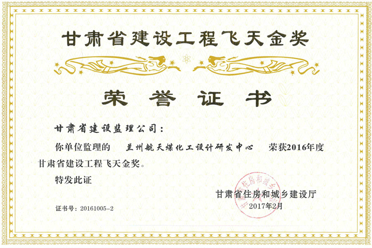 2016年度甘肅省建設(shè)工程飛天金獎(jiǎng)